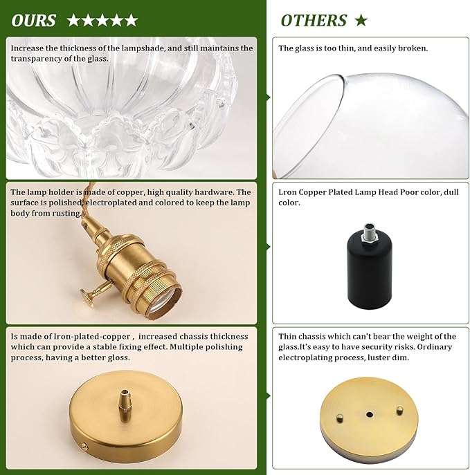 - 【Ingenious Design】The knob switch on the pendant light is exquisitely designed to retain the characteristics of the retro style while providing the convenience of modern life. You can easily turn the light on and off by simply turning the switch. And the wire is wrapped in a rubber coating with fabric covering for safety and reliability.