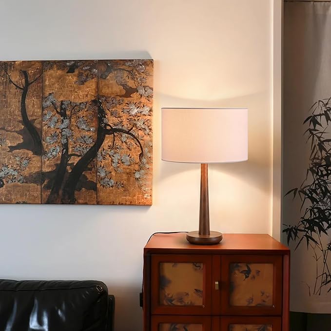 - 【Elegant & Classic Design】The bedroom table lamp has a smooth natural walnut wood base and a white linen lampshade, presenting a simple and elegant appearance, suitable for decorating any part of your home