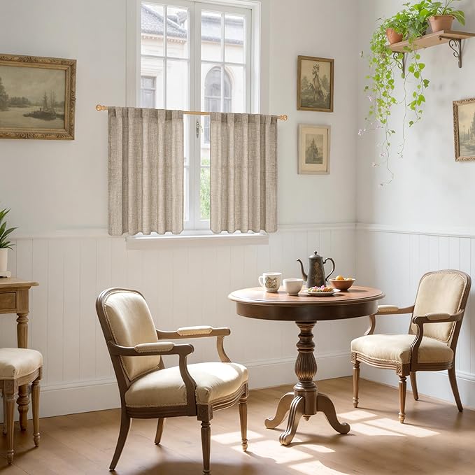 YoungsTex 36 Inch Length Linen Farmhouse Kitchen Window Curtains, Short Cafe Drapes with Rod Pocket Back Tab Burlap Light Filtering for Bathroom Window, Dark Oatmeal, 2 Panels, 42 X 36 Inch