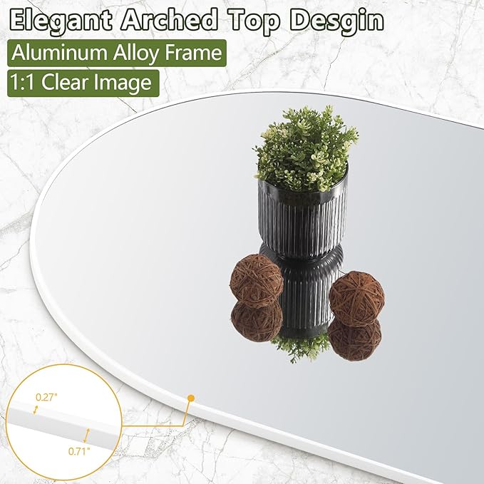 - Arched Full Length Mirror: Our 56x18 inch full length mirror gives you a complete look in one go. It not only shows off your best angles but also makes your space feel bigger and brighter. Choose from various sizes to suit your style.