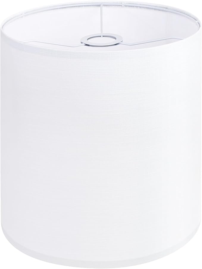 White Linen Tall Drum Lampshade, 11" Top x 11" Bottom x 12" High Lamp Shade, Lamp Shade Replacement for Table and Floor Lamps, Pendant Light,Handcrafted Lampshade,Easy Assembly
