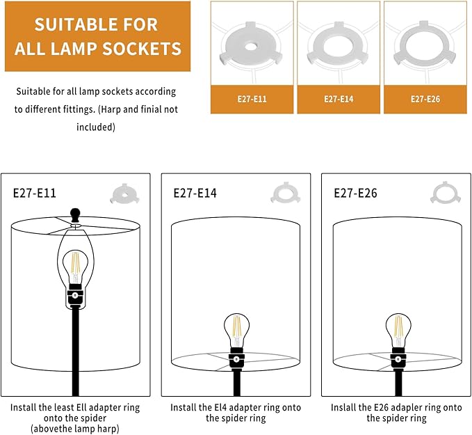 - Lampshade Dimensions & Packaging: With a top diameter of 11 inches, a bottom diameter of 11 inches, and a height of 12 inches, this lampshade is designed to fit a variety of lighting fixtures. The screw thread has a diameter of 1.65 inches, and we include three adapters to ensure compatibility with different lighting setups. Detailed views of the adapters can be found in the product images. This generously sized lampshade offers versatility, easily complementing table lamps, floor lamps, pendant light, and more. Add a unique touch of charm to your home lighting with this elegant addition.