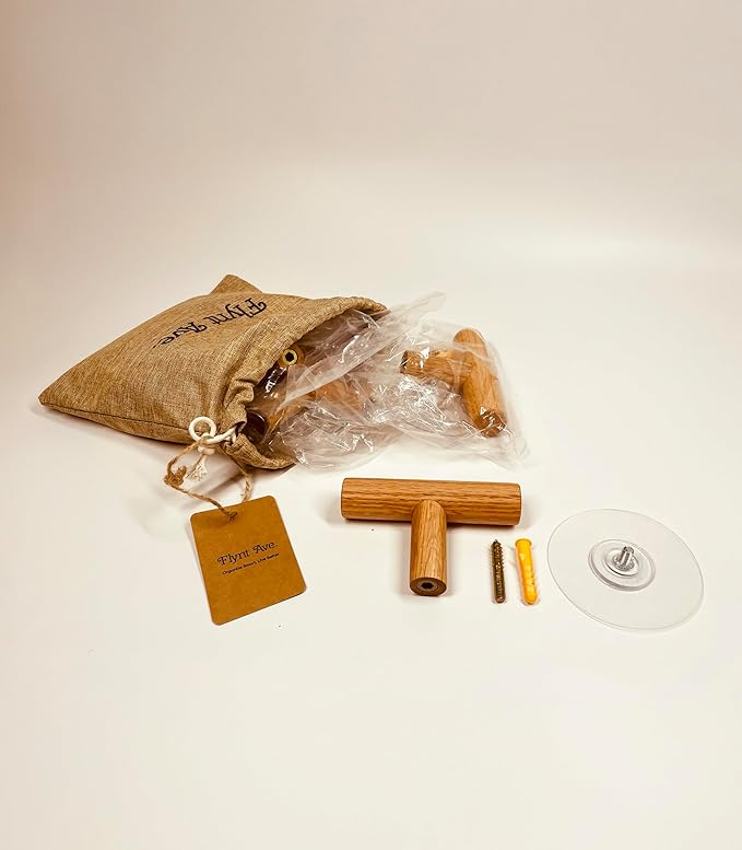 - Add a touch of elegance to your home with these beautifully crafted natural oak wood wall hooks. Featuring a sleek, minimalist design, these smooth t-shape hooks combine style and functionality. Multiple mounting options that is quick and easy to install against any wall, making them the perfect wall hooks for hanging coats, bags, hats, or other accessories. Whether placed in an entryway, bedroom, bathroom, or living space, the oak wall hooks seamlessly blend into your décor while offering a practical solution for organizing your essentials.