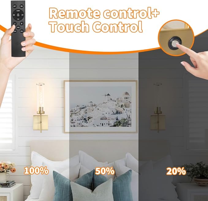 - 【Two Control Options】Wireless Battery powered led wall lamp with remote control, that can be turned on/off, dim brightness via RC or touch button. If separate control is required, it can be realized by RC match code to achieve the effects you want