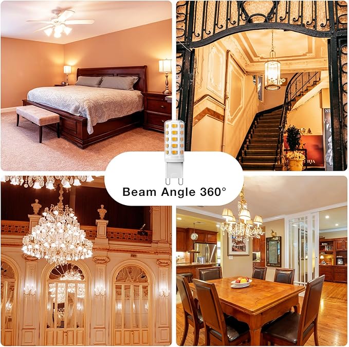 - 3000K Soft Warm and 360° All-Around Lighting: It emits a soft white output of 450 lumens and a color temperature of 3000K in 360 degrees, which provides you with a broader, stabler and clearer lighting experience without blind corners or shadow. Our G9 bulbs color rendering index>85, restore the true and clear color of the item