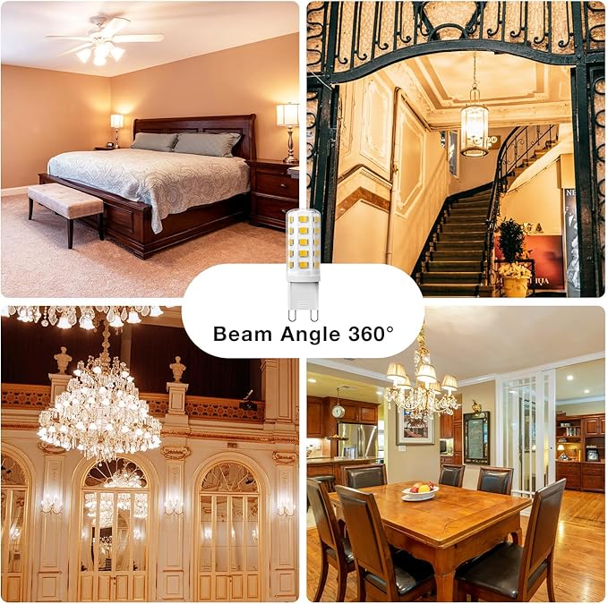 - 3000K Soft Warm and 360° All-Around Lighting: It emits a soft white output of 450 lumens and a color temperature of 3000K in 360 degrees, which provides you with a broader, stabler and clearer lighting experience without blind corners or shadow. Our G9 bulbs color rendering index>85, restore the true and clear color of the item