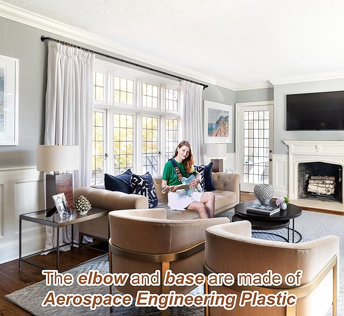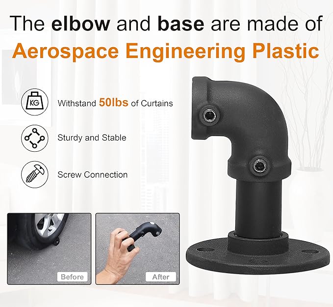 - Aerospace-Grade Durability & Heavy Duty Performance :The base and elbow components are made from aerospace-grade engineering plastics, ensuring exceptional strength and durability. These rods provide reliable support for heavy curtains, making them perfect for blackout curtain rods, rustic curtain rods, and industrial curtain rods.