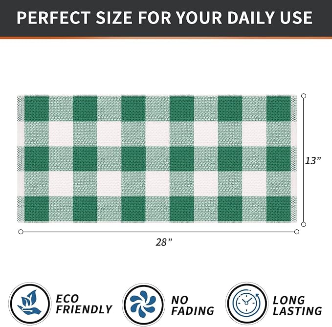 Homaxy 100% Cotton Waffle Weave Check Plaid Kitchen Towels, 13 x 28 Inches, Super Soft and Absorbent Dish Towels for Drying Dishes, 4-Pack, White & Dark Green
