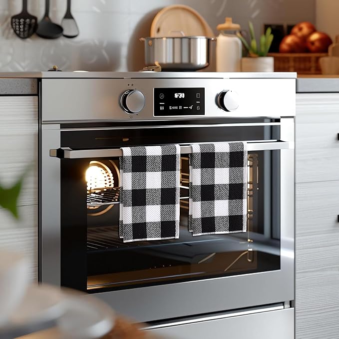 Homaxy 100% Cotton Waffle Weave Check Plaid Kitchen Towels, 20 x 28 Inches, Super Soft and Absorbent Dish Towels for Drying Dishes, 4-Pack, White & Black