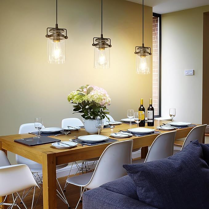 - 【Easy Installation】This farmhouse pendant lighting including all hardware and instruction that make the installing easy and quick, just need to connect the wires correctly to the positive/negative pole; attach the lamp base, tighten it with screws; install the glass shade; tighten it with screws to the lamp fixtures and then install the E26 bulb