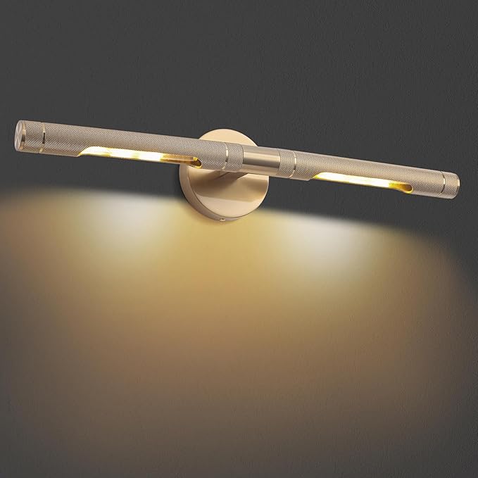 - Modern Luxury Knurled Design: This wall sconce is made of metal with an antioxidant-treated finish that prevents rusting and fading, the luxury brushed brass texture is gorgeous, making it suitable for bathrooms or wet areas.Picture lights for wall add highlights to decorations such as paintings or mirrors