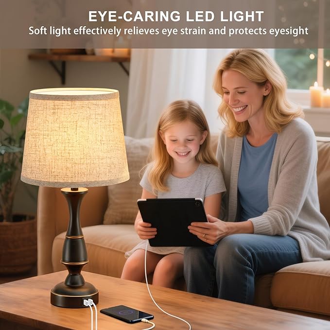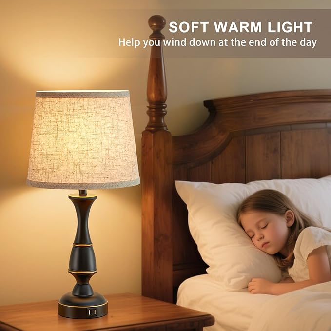 - 【Bedside Lamps with Dual USB A Ports】This bedroom lamps designed with dual USB-A port on touch lamp base. This means that you can conveniently charge up to two devices by bedroom lamps simultaneously, such as your phone, Kindle, pad, and other devices.(Designed by Luvkczc, Patent No. D1044104)