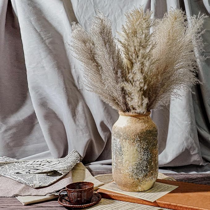 - Size: Measuring 9.17 inches tall, 5.51 inches wide, and with a 3.85 inch opening, this rustic vase is ideal for displaying greenery, dried flowers. The farmhouse vase itself can be used as a beautiful decorative piece in your living room, bedroom or office