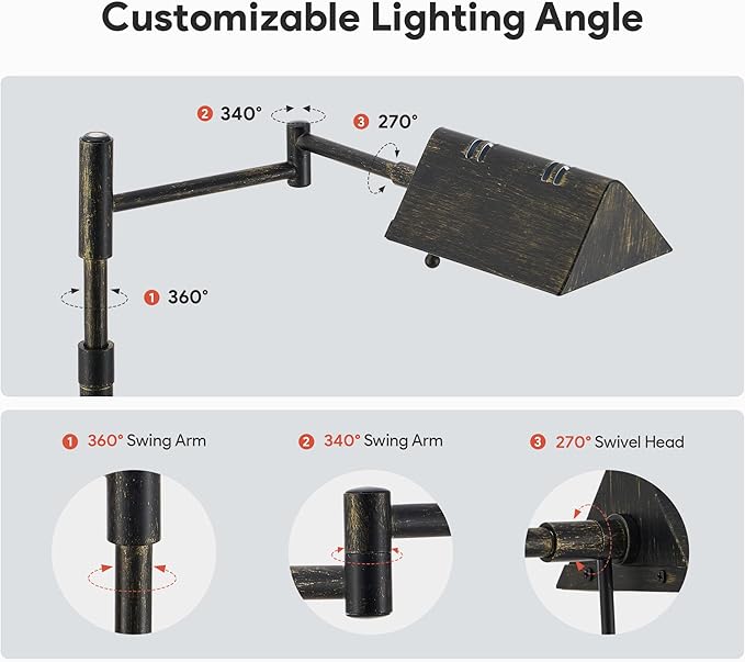 - Fully Adjustable Design: With an adjustable height ranging from 50.6" to 56", a 270° rotating head, a 340° swing arm, and a 360° swivel arm, this LED floor lamp is designed to meet all your lighting needs—from cozy reading nooks to office workstations