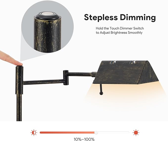 - Effortless Touch Control: The touch switch on this standing lamp makes adjusting the light super easy. Just tap to switch between 3 color temperatures (3000K, 4000K, 5000K), or hold it down to smoothly intensify the light from 10% to 100%
