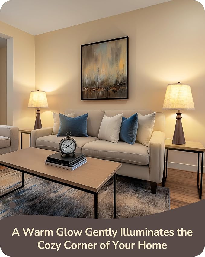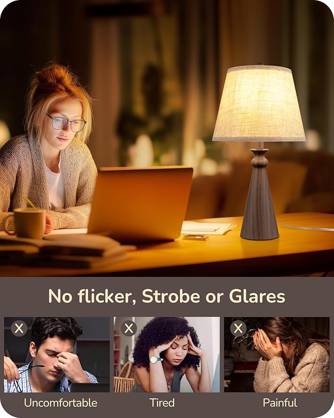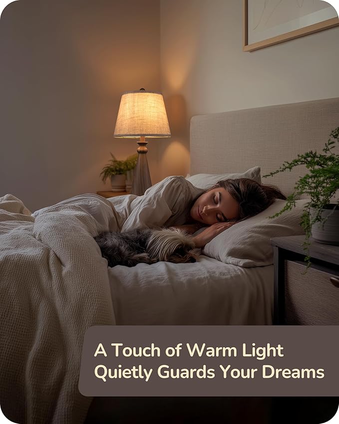 - [Soft Beige Linen Lampshade] Designed in a classic American style, the beige linen shade bedside table lamp diffuses light gently, creating a cozy ambiance—ideal for reading, studying, working, or winding down before sleep
