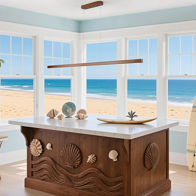 - 【Elegant Solid Walnut Design】Crafted from premium kiln-dried walnut wood, this linear pendant light exudes organic warmth and Scandinavian-inspired minimalism. The clean, uncluttered lines blend seamlessly with farmhouse, mid-century, and contemporary interiors, transforming your kitchen island or dining table into a sophisticated focal point.This LED pendant kitchen island lights Color:Walnut,size:55"(L)*1.7"(W)*1.7"(H) The mounting part:18.9 x 4.3 x 1.4 inches(l*w*h) Compatible with standard junction boxes.NOTICE:please do not use dimming switch,dimming equipment has been configured inside the light,please use ordinary wall button switch.otherwise the light fixture may flicker.