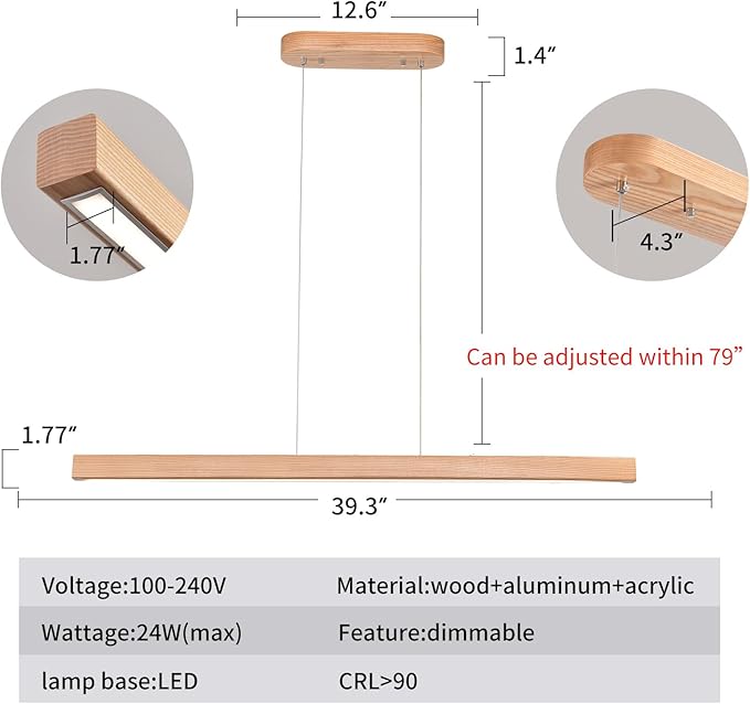 - 【Dimensions】This LED pendant kitchen island lights size:39"(L)*1.7"(W)*1.7"(H)The mounting part:12.6 x 4.3 x 1.4 inches(l*w*h) Compatible with standard junction boxes.Includes mounting hardware for vaulted,sloped ceilings.