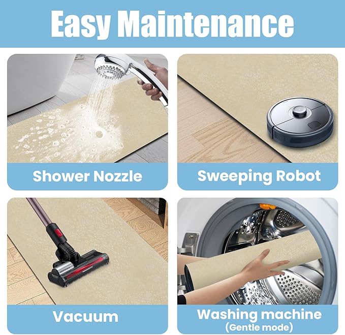 - 【Easy to Clean】Bath mats with new hair-free technology layer, water evaporates quickly, dirt attach to the surface,stain-resistant and easy to clean. Therefore, you don’t need to dry or clean the washable bath mat every day. If you want to clean it after long-time use, simply wipe the washable bathroom rugs with a wet cloth, or rinse it with shower nozzle. The bath rug for bathroom looks as good as new now