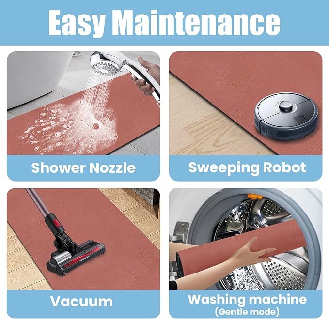 - 【Easy to Clean】Bath mats with new hair-free technology layer, water evaporates quickly, dirt attach to the surface,stain-resistant and easy to clean. Therefore, you don’t need to dry or clean the washable bath mat every day. If you want to clean it after long-time use, simply wipe the washable bathroom rugs with a wet cloth, or rinse it with shower nozzle. The bath rug for bathroom looks as good as new now