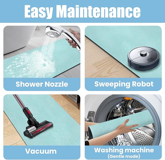 - 【Easy to Clean】Bath mats with new hair-free technology layer, water evaporates quickly, dirt attach to the surface,stain-resistant and easy to clean. Therefore, you don’t need to dry or clean the washable bath mat every day. If you want to clean it after long-time use, simply wipe the washable bathroom rugs with a wet cloth, or rinse it with shower nozzle. The bath rug for bathroom looks as good as new now