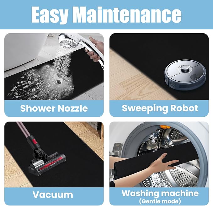 - 【Easy to Clean】Bath mats with new hair-free technology layer, water evaporates quickly, dirt attach to the surface,stain-resistant and easy to clean. Therefore, you don’t need to dry or clean the washable bath mat every day. If you want to clean it after long-time use, simply wipe the washable bathroom rugs with a wet cloth, or rinse it with shower nozzle. The bath rug for bathroom looks as good as new now