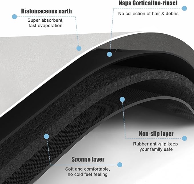 - 【Super Absorbent & Quick Dry】These bathroom mat quick dry are designed with a Faux suede surface, Sabsorbs water efficiently, no water accumulation. bathroom rug absorbs dripping water in 3 seconds when you come out from the bathtub or shower, With its quick-drying design makes the bath mat dry quickly, Keep the floor clean and dry to keep your home comfortable and clean.