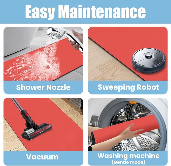 - 【Easy to Clean】Bath mats with new hair-free technology layer, water evaporates quickly, dirt attach to the surface,stain-resistant and easy to clean. Therefore, you don’t need to dry or clean the washable bath mat every day. If you want to clean it after long-time use, simply wipe the washable bathroom rugs with a wet cloth, or rinse it with shower nozzle. The bath rug for bathroom looks as good as new now