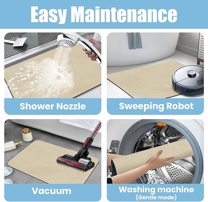 - 【Easy to Clean】Bath mats with new hair-free technology layer, water evaporates quickly, dirt attach to the surface,stain-resistant and easy to clean. Therefore, you don’t need to dry or clean the washable bath mat every day. If you want to clean it after long-time use, simply wipe the washable bathroom rugs with a wet cloth, or rinse it with shower nozzle. The bath rug for bathroom looks as good as new now