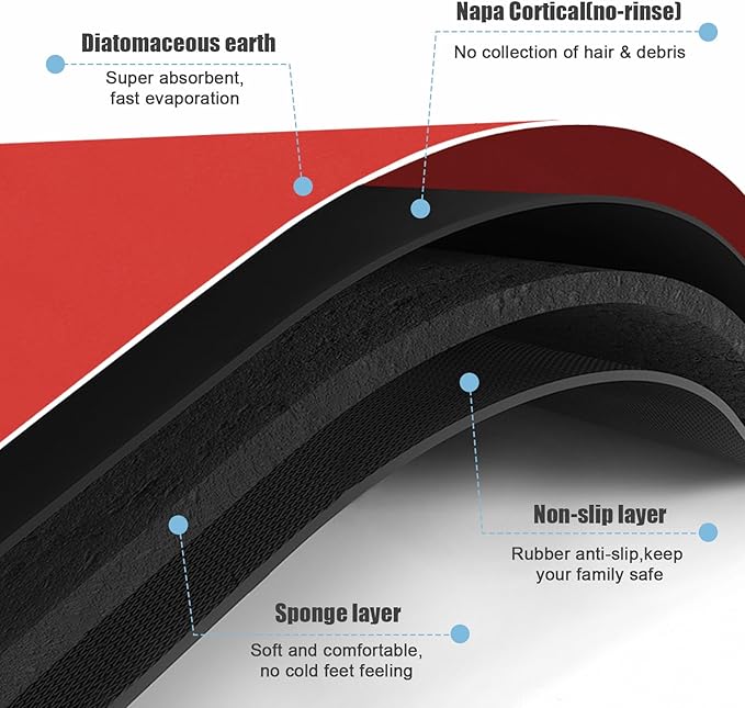 Large Bathroom Rugs Diatomaceous Earth Bath mat Super Absorbent Quick Dry Non Slip Bath Mat Thin Bathroom Floor Mats Fit Under Door-Shower Rug for in Front of Bathtub Shower, Red, 19.6"x31.5"