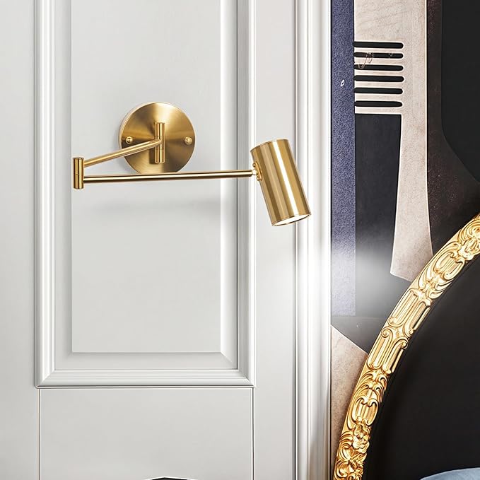 Indoor Wall Light Adjustable Swing Arm 5W LED Metal Wall Lamp 3000K Warm White Retro Vintage Industrial Wall Sconce, for Living Room Bedroom Hallway Corridor Stairs Hall, Gold