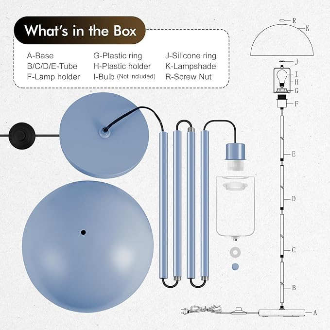 - Simple But Not Lacking in Design: This floor lamps for living room combines the mushroom dome lampshade (D11.8in) with all-blue metal design, the simple appearance and metal texture make this standing lamp perfectly suited to modern, minimalist, industrial, Scandinavian and other home styles, whether as a living room floor lamp, study floor lamp, bedroom floor lamp, or office floor lamp, can be easily integrated into and enhance the sense of space and fashion.