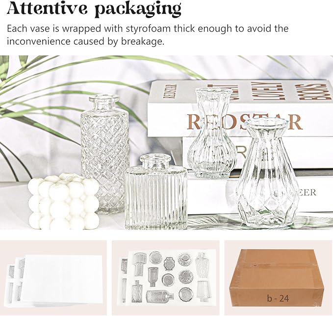 - Perfect decoration:The number of vases is sufficient, with 4, 12, 24, and 36 to choose from. They can be used as centerpieces for dining tables or as standalone decorations, making them the best choice for wedding centerpieces, parties, indoor, outdoor, Thanksgiving, Christmas, and various other holidays.