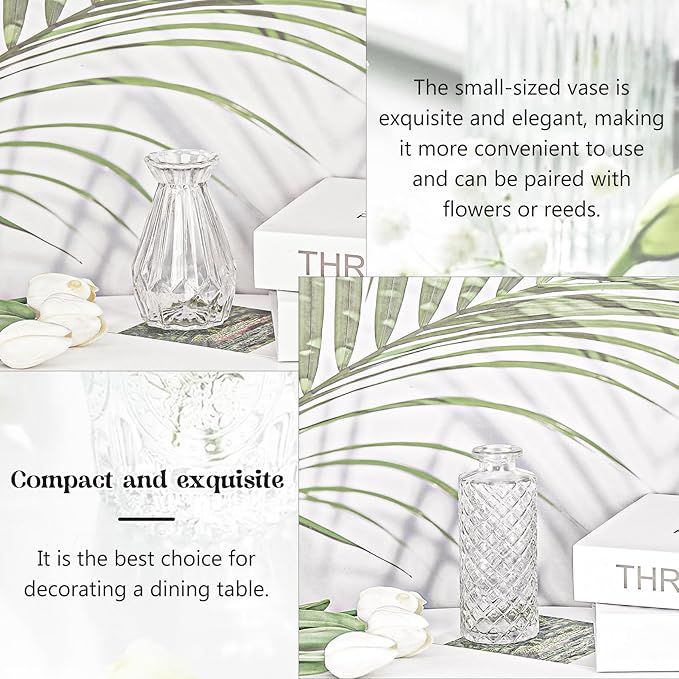 - Exquisite retro design:These charming small flower vases are exquisitely designed with an elegant and romantic style. Each vase comes in a different size and shape. The surface of the vase is etched with different patterns and retro designs, which can be matched with various styles and suitable for use in various scenarios.