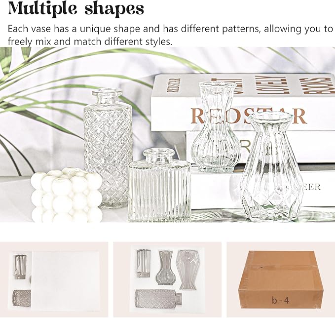 - Exquisite retro design:These charming small flower vases are exquisitely designed with an elegant and romantic style. Each vase comes in a different size and shape. The surface of the vase is etched with different patterns and retro designs, which can be matched with various styles and suitable for use in various scenarios.
