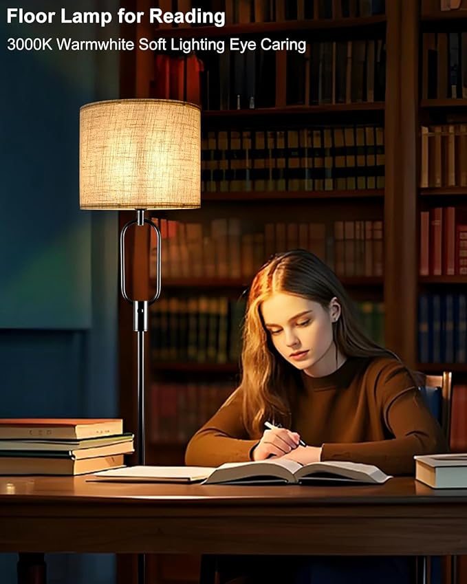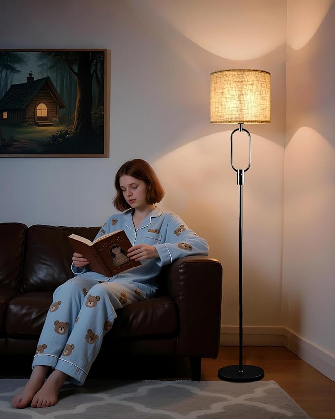 - Soft Glow &Fabric Lampshade✨This vintage floor lamp features a fabric lampshade to create soft and comfortable lighting, effectively protecting your eyes. The light through the fabric lampshade creates a warm atmosphere where you can comfortably sit on the sofa with a coffee or a book.