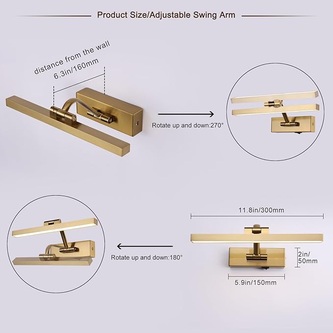 - Free Rotations & Wide Applications: The painting lights cordless with 270°rotation head and a swivel up and down 180°swing arm, so you can rotate the direction of the light source according to your needs.The cordless picture light battery operated is perfect for lighting up your wall artworks, dartboard, photos