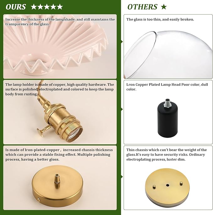 - 【Pink Ceramic】Pink ceramic lampshade not only has good light transmission, but also can evenly scatter light, reduce glare, and provide soft and comfortable lighting effects. At the same time, the high temperature resistance of the ceramic material also ensures the safety of the lamps.