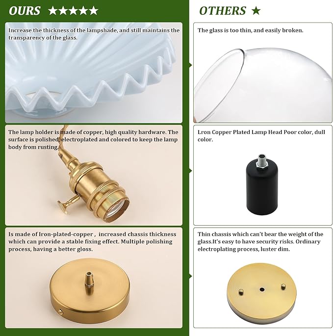 - 【Product Dimensions】Lampshade Dimensions: 7.87"Dia.x7.87"H(20cmx20cm),Adjustable Chain Length: 59"(150cm). Polishing brass accessories are less prone to rusting, durable, anti-oxidation and moisture proof. INCLUDING A Bulb (G45, 6W,2700k). With a rotary switch, need Hardwired. Shenmoyl pendant light has obtained CEC certification.