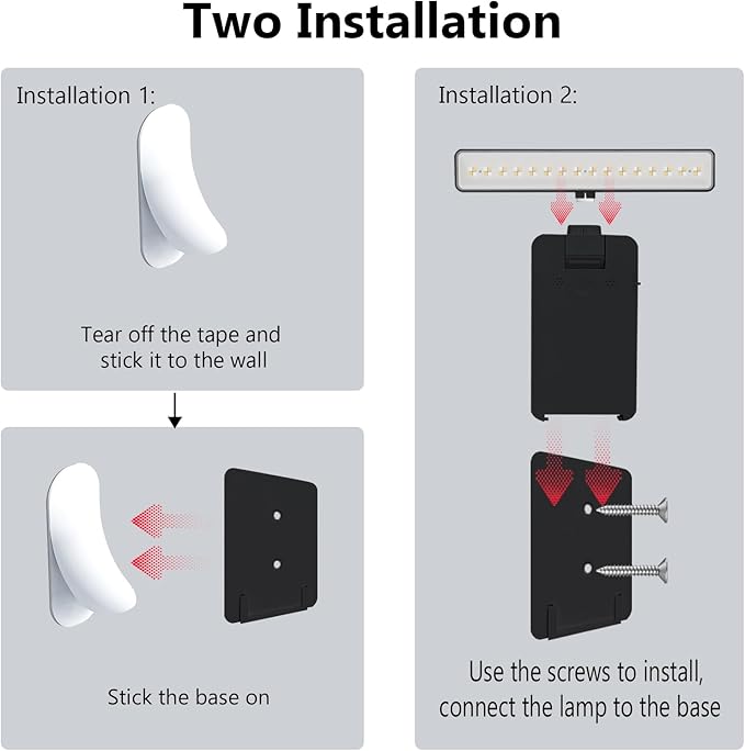 - 5 Seconds Quick Installation: Equip you with magnet sheets, double-sided adhesive and screws. The picture light can be used flexibly (removable). Easy Installation, no tools and wiring required. If you feel that the installation with double sided tape is not strong, please use sturdy screws to install it