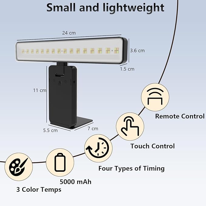 - Remote Control & Touch Control: Remote control: on/off, 3 color temperature (warm, natural, cool white), 10-100% brightness adjustment, Timer function (15/30/60/120 mins). Touch Control: on/off, 3 color temperature and brightness dimmable