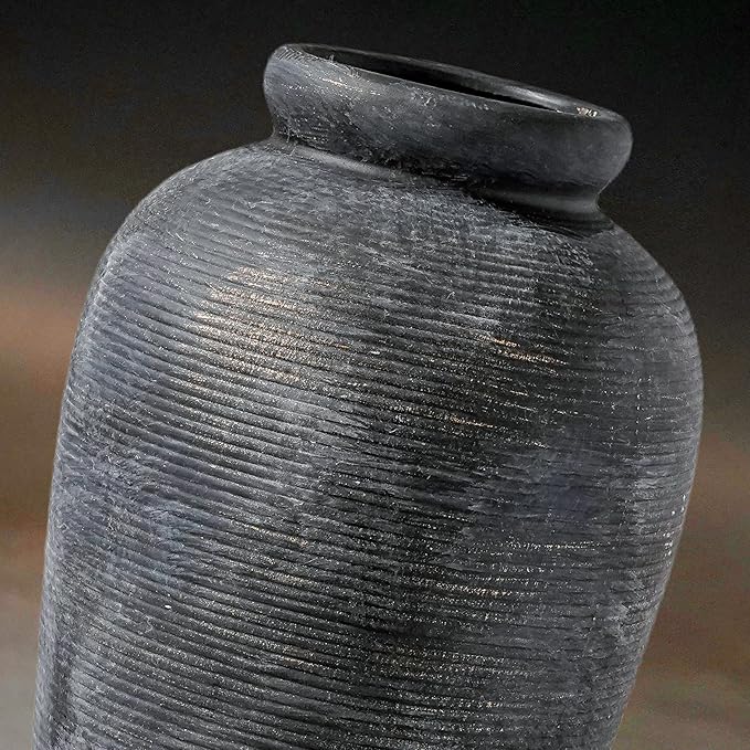 Rustic Vase, 11 inch Large Terracotta Flower Vase, Farmhouse Ceramic Pottery, Distressed Farmhouse Decor for Living Room, Shelf, Entryway, Room Decor, Black Bronze