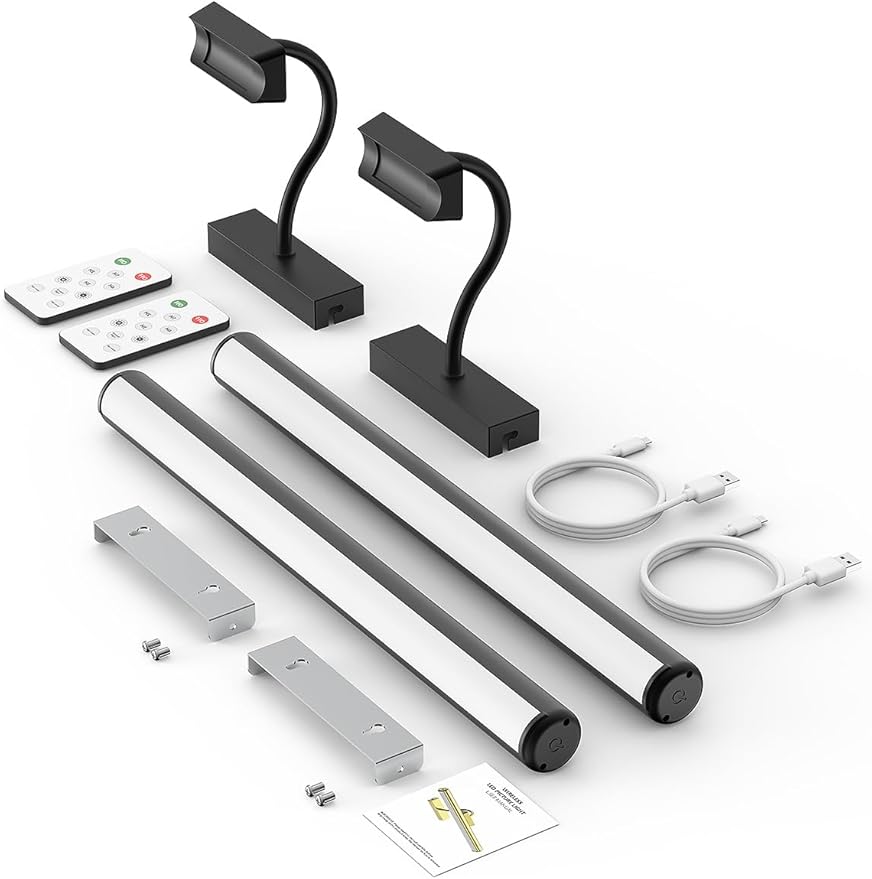 16in Wireless Picture Light with Remote, Battery Operated Picture Lights for Wall 5000mAh, 3 Color Modes and Dimmable LED Art Lighting with Timer for Painting, Frame, Gallery, Bedroom (Black-2Pack)