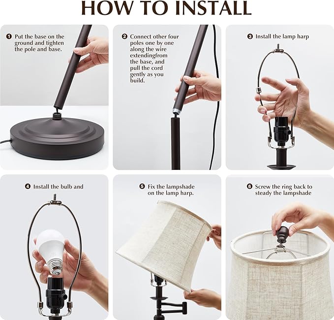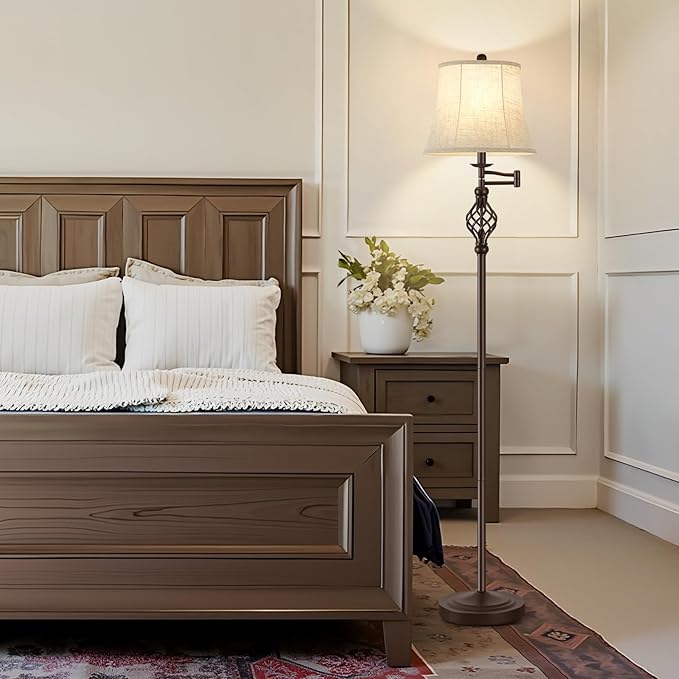 - 【350° Adjustable Swing Arm】This traditional floor lamp features an swing arm, adjustable up to 350°, allowing you to direct light precisely where needed. Perfect for placement over a chair, bed, or behind a sofa, it offers both functionality and flexibility.