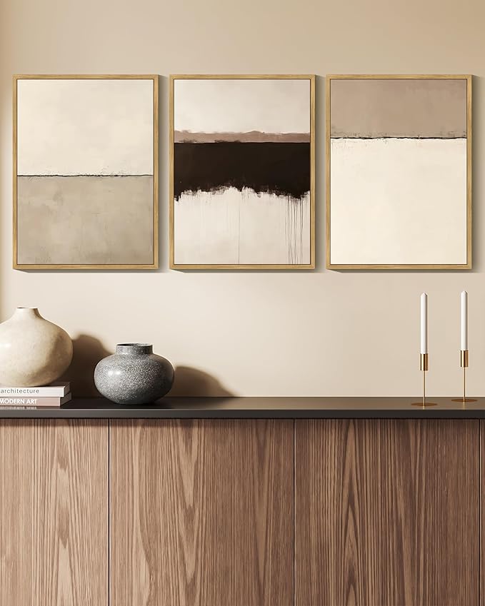 - Neutral Abstract Art - Featuring minimalist line designs and textured beige tones, this black abstract framed wall art draws inspiration from mid-century modern aesthetics, adding timeless elegance to any space.