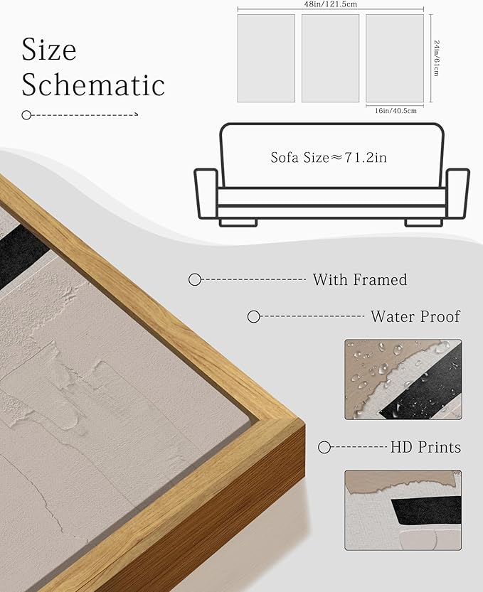- Sturdy Frame & Easy Installation - Each 16x24 inch abstract frame artwork has a direct hanging groove on the back and is equipped with traceless nails, ready to hang.