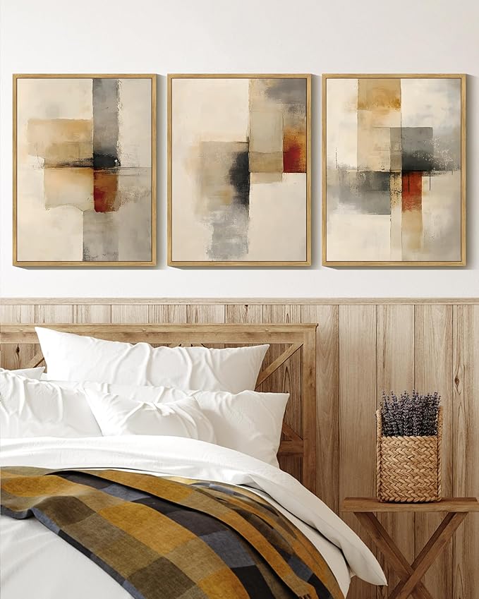 - Neutral Abstract Art - Featuring minimalist line designs and textured beige tones, this black abstract framed wall art draws inspiration from mid-century modern aesthetics, adding timeless elegance to any space.