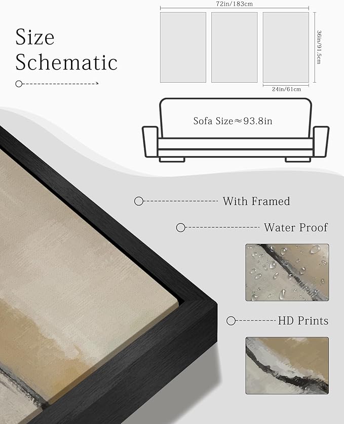 - Sturdy Frame & Easy Installation - Each 24x36 inch abstract frame artwork has a direct hanging groove on the back and is equipped with traceless nails, ready to hang.