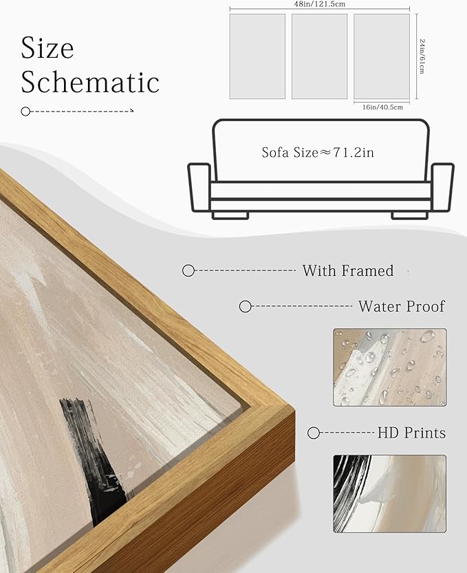 - Sturdy Frame & Easy Installation - Each 16x24 inch abstract frame artwork has a direct hanging groove on the back and is equipped with traceless nails, ready to hang.