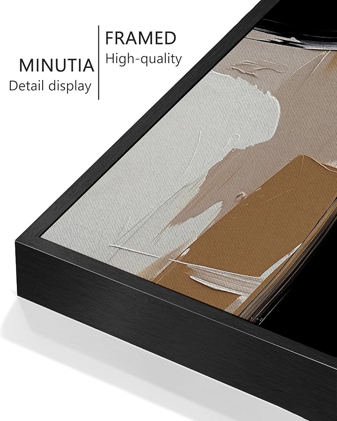 - Neutral Abstract Art - Featuring minimalist line designs and textured beige tones, this black abstract framed wall art draws inspiration from mid-century modern aesthetics, adding timeless elegance to any space.